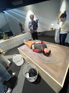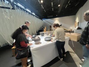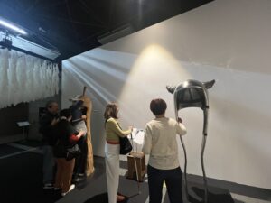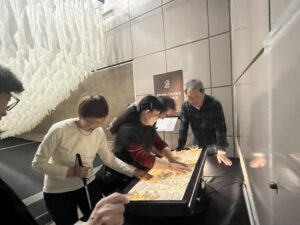広瀬先生のギャラリートークの動画をあらかじめ見ていたり、一度見ている池山先生の説明があったので私たちはとてもよくわかったのですが、もし何の予備知識もない人が来たとしたら、触ることにも慣れておらずかなり暗い中ということだと、どこまで製作者や出展者の意図を理解できるのか、少し疑問に思うところもあります。
