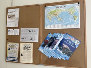 渡辺研究室に近づくと、なんと事前にお送りしていた刻字展のチラシを拡大して掲示してくださっており、感激しました。